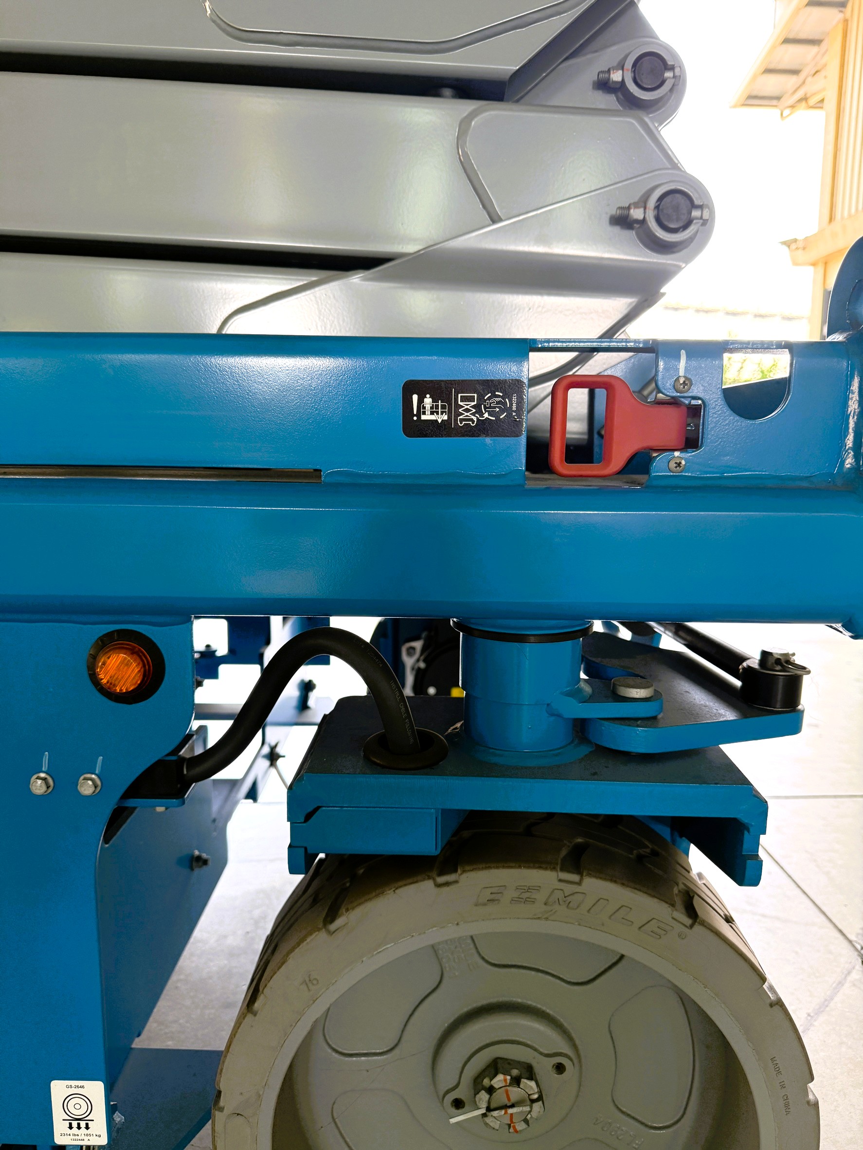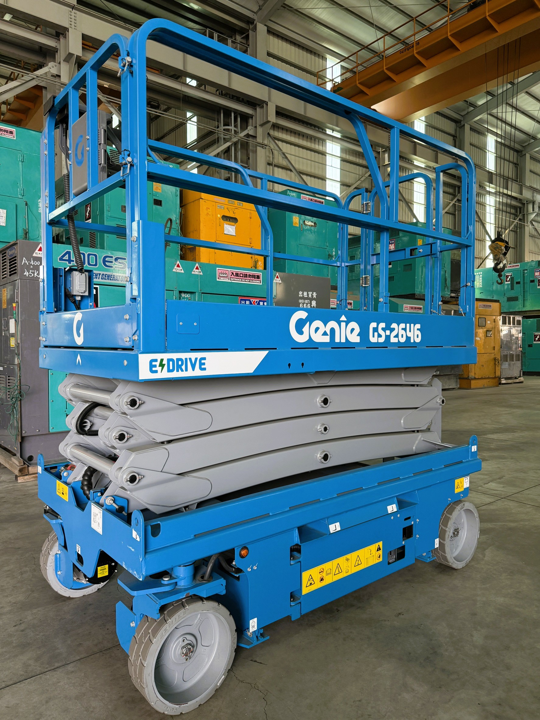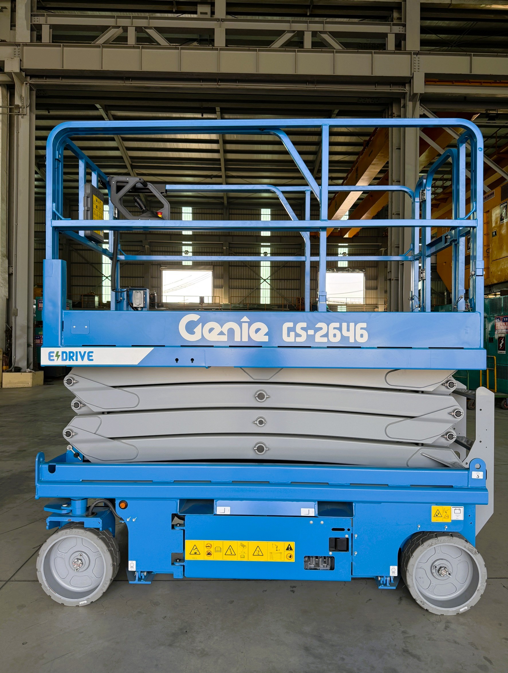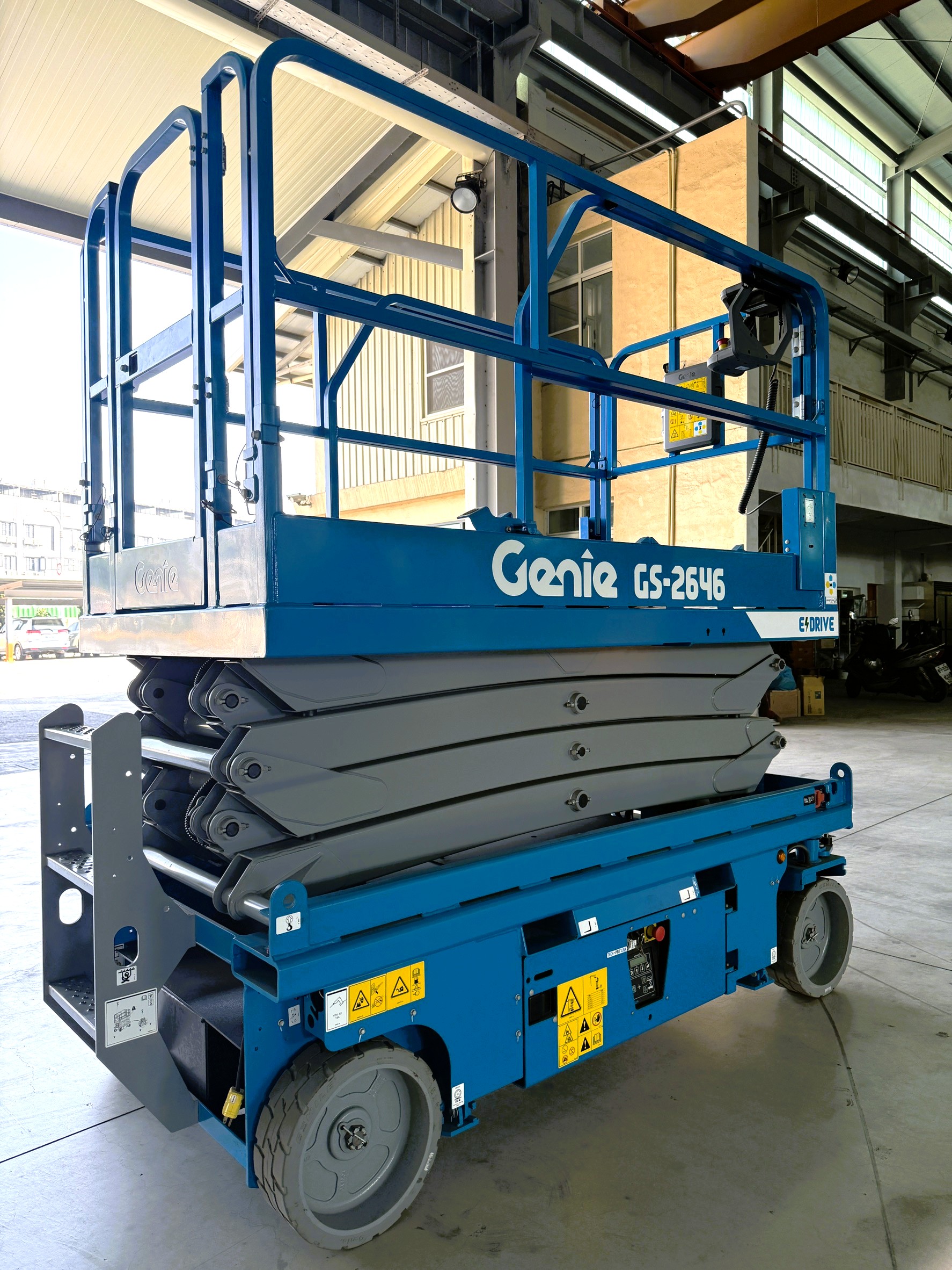 熱門新改版GS2646全新設計人性化控制介面符合ISO21455標準,專利設計彎曲焊接連桿大幅提升整體強度和穩定性,可選擇室內室外雙區域選項,內側0轉彎半徑可靈活定位;可推出延伸0.91M平台增加作業範圍,大載重450kg方便載料雙人作業、交流電驅配置無噪音、零排放適用環境要求,兩側與後方叉車孔方便工作調度,是您最佳工作夥伴!
