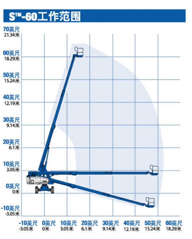 S60設計友善操作簡單的使用介面、360度的連續迴旋角度可提供全方位的定點作業、內建荷重感應的液壓系統和備用緊急安全裝置等安全設計,讓您在高處作業時安心信賴與最佳工作效率的最佳選擇。