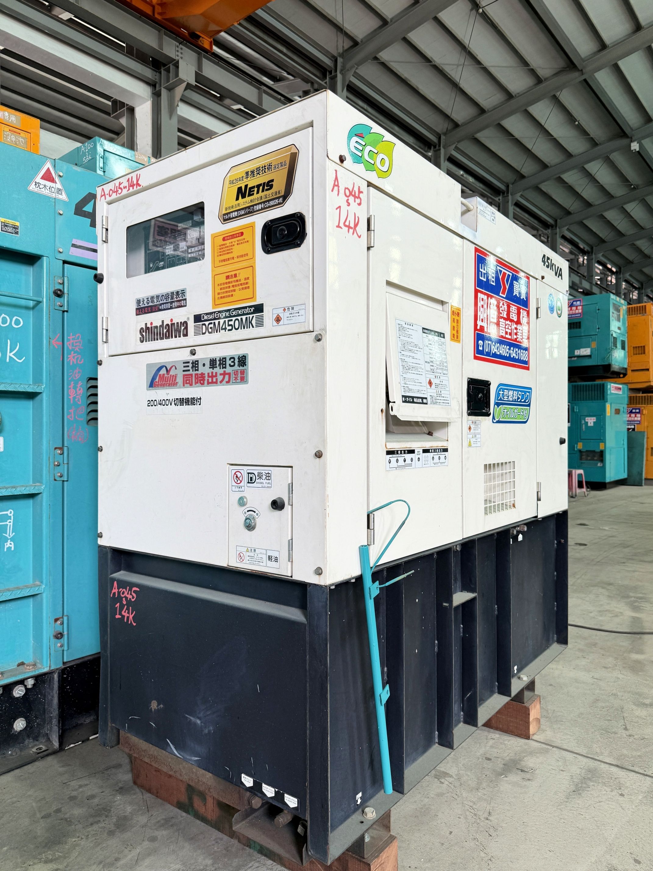DGM450MK-P 配備了大型燃料箱能夠大幅度延長運行時間,油機護衛系統防止意外油料洩漏時保護工地環境,搭載符合環保排放法規的引擎有超低噪音、低燃耗的優點,提供舞台活動、防颱準備等臨時用電需求的新選擇。