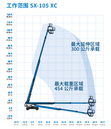 SX-105XC是客戶指定特殊車款的型號,產品性能全面升級外,超載重平台可容納三名作業人員,電腦模組與感應器全方面偵測角度、荷重與作業範圍,智慧診斷排除故障與保養提醒,穩定配合工地保證最高效率的施工進度與品質!